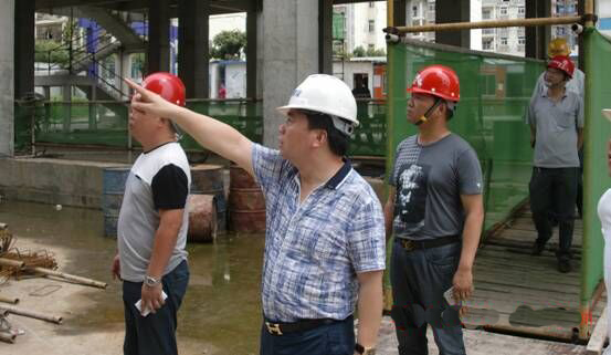 2015年6月13日周六上午,集團公司召開完周行政工作例會后,在總經理徐遠征同志的帶領下,市場管理部、工程管理部、招投標部、綜合管理部、市政分公司負責人第一站來到蔡甸大拇指廣場檢查施工現場文明施工整改情況,總經理首先肯定了上次檢查整改后施工現場明顯改觀,隨后就進一步完善圍擋角區(qū)、安全帽佩戴等進一步提出了要求;第二站來到大集張堡小學施工現場,對墻基坑深度提出了嚴格按圖紙施工的規(guī)范要求,安排由公司工程管理部對該施工工地實行24小時嚴格監(jiān)管的做法得到了校方領導的充分肯定。