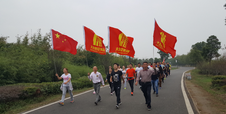 “1234,1234,大集,大集,齊心協(xié)力,奮勇向前,只爭朝夕……”整齊劃一的吶喊聲和腳步聲迎面而來,鮮艷奪目的企業(yè)司旗,年輕似火的團隊成員一一盡現(xiàn)眼簾,大家表現(xiàn)得十分活躍,動作協(xié)調(diào),緊密配合,處處可以感受到團隊合作的力量。在這里,在此時,正在如火如荼的上演一場熱身賽。這里是后官湖濕地公園的跑道上,也是湖北大集建設集團為參加本月底半馬比賽而組織的集結(jié)地。