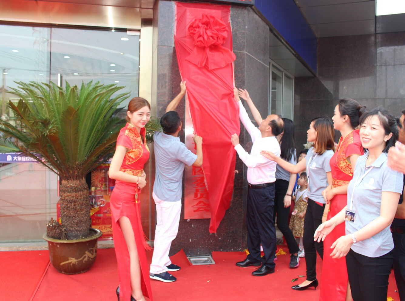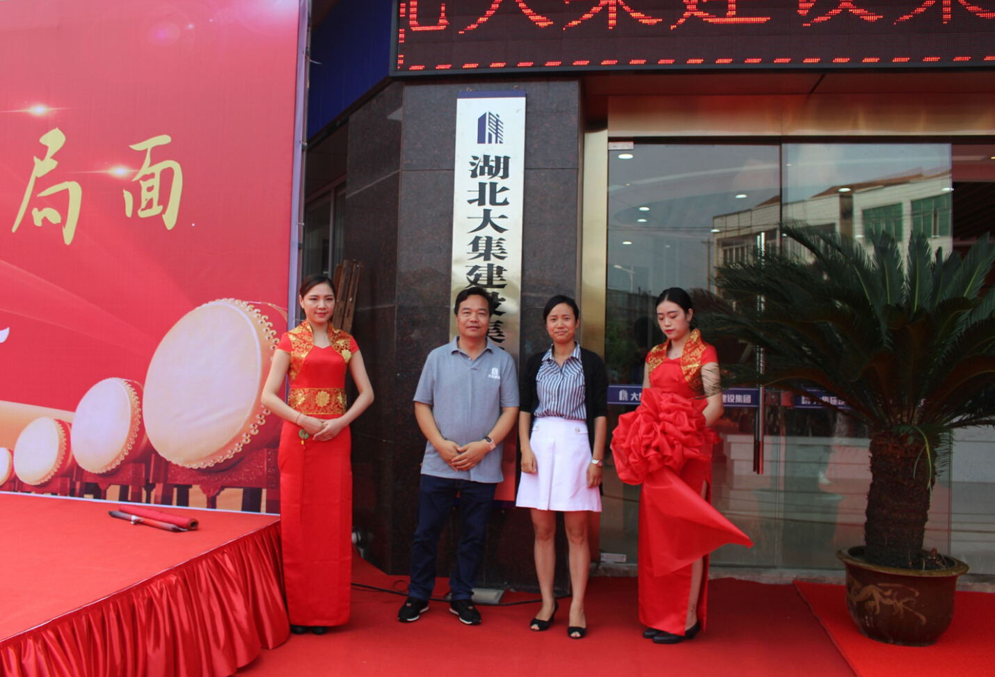 10:38分,當(dāng)徐董事長(zhǎng)、街黨委曹書記共同攜手揭開(kāi)中國(guó)共產(chǎn)黨湖北大集建設(shè)集團(tuán)委員會(huì)的牌匾,總經(jīng)理徐遠(yuǎn)征、街工委王主任攜手揭開(kāi)湖北大集建設(shè)集團(tuán)有限公司的牌匾時(shí),喬遷慶典的高潮環(huán)節(jié)正式開(kāi)始!