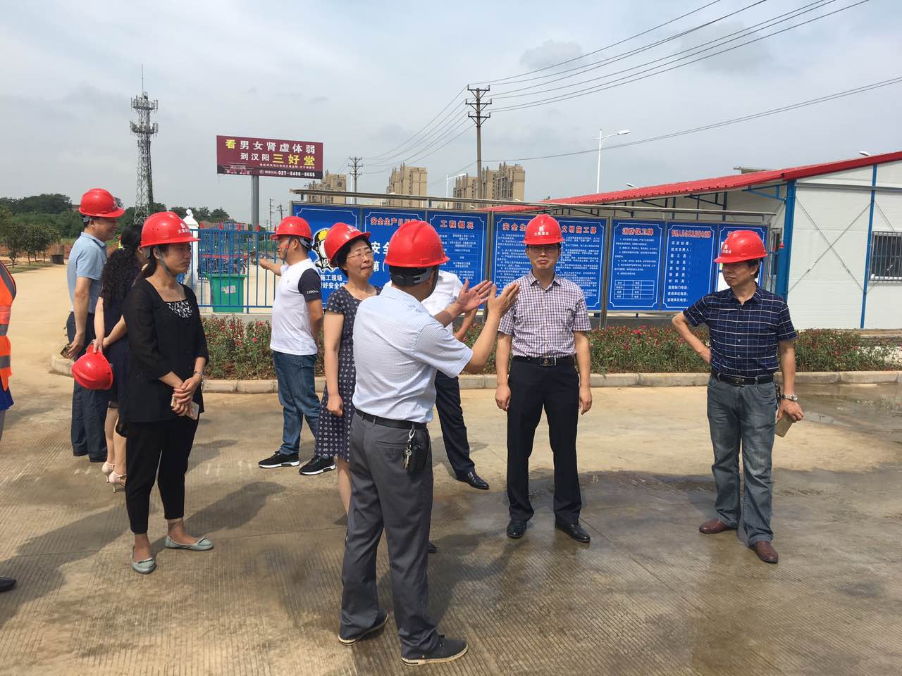 6月22日,蔡甸區(qū)朱副區(qū)長、教育局李局長及大集街黨委曹書記、街工委王主任一行蒞臨南湖小學(xué)項目進行考察指導(dǎo)工作,集團董事長徐濤親自帶隊,對于各級領(lǐng)導(dǎo)的考察表示熱烈歡迎并對工程進展及管理情況作重點匯報。