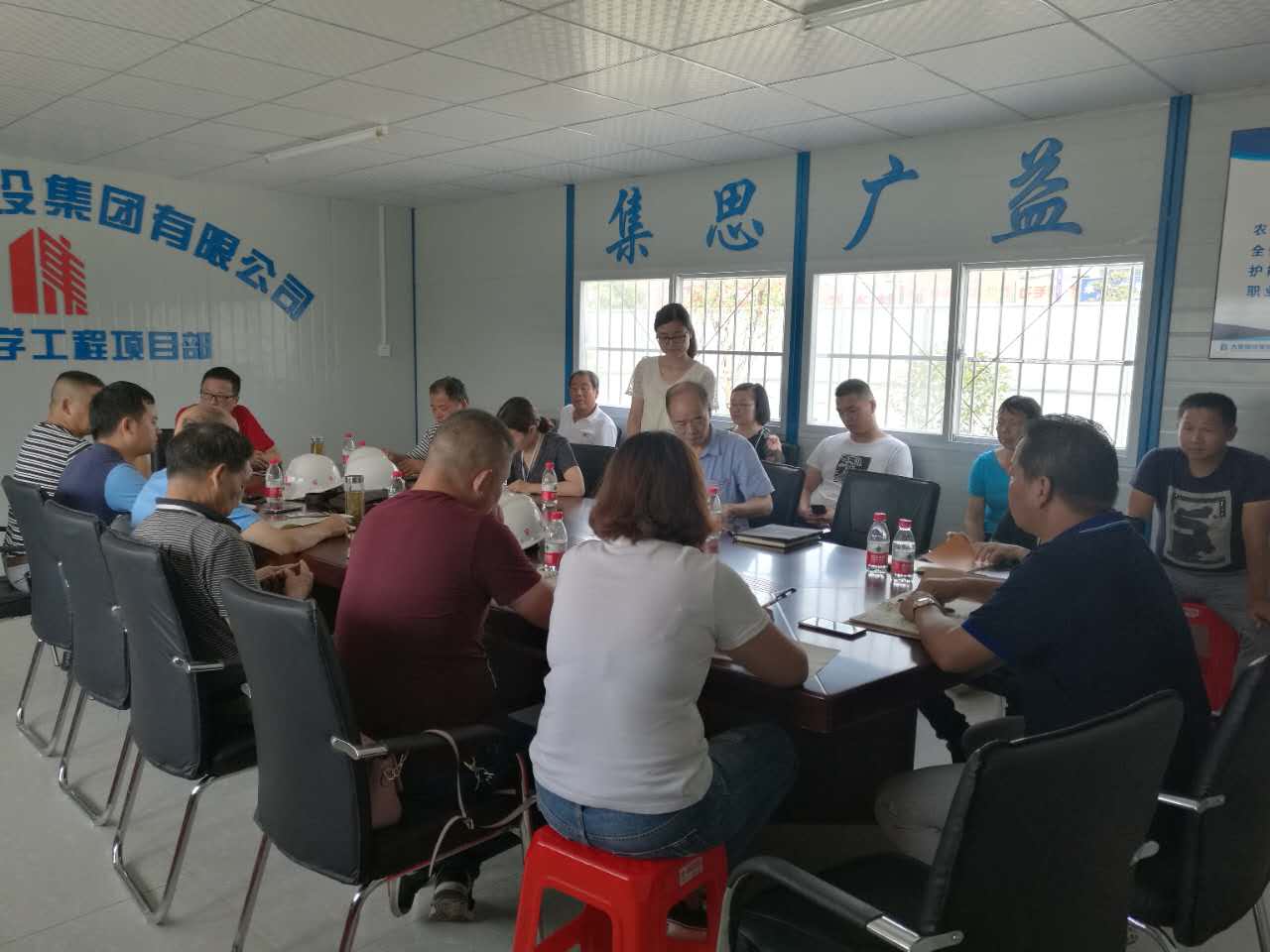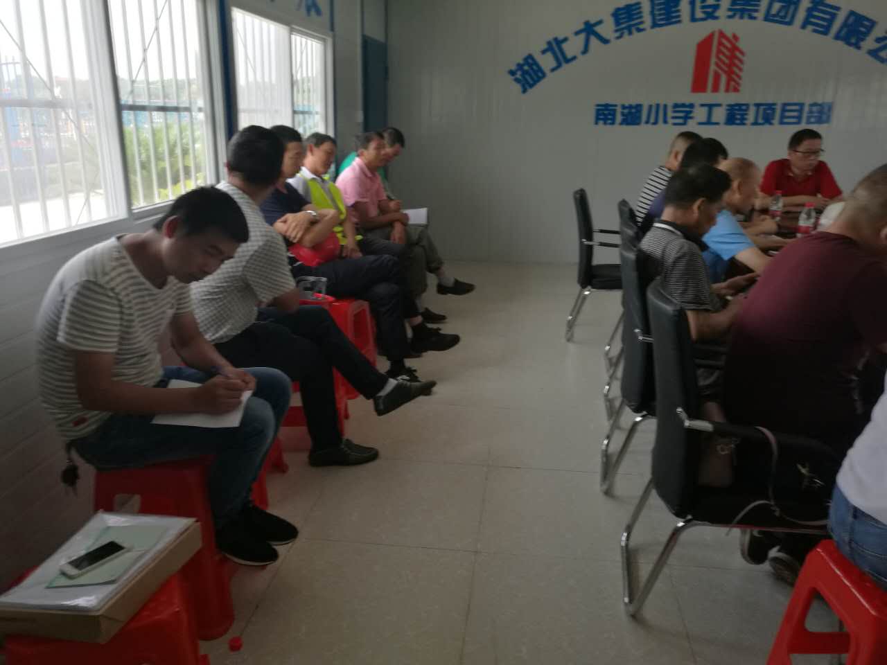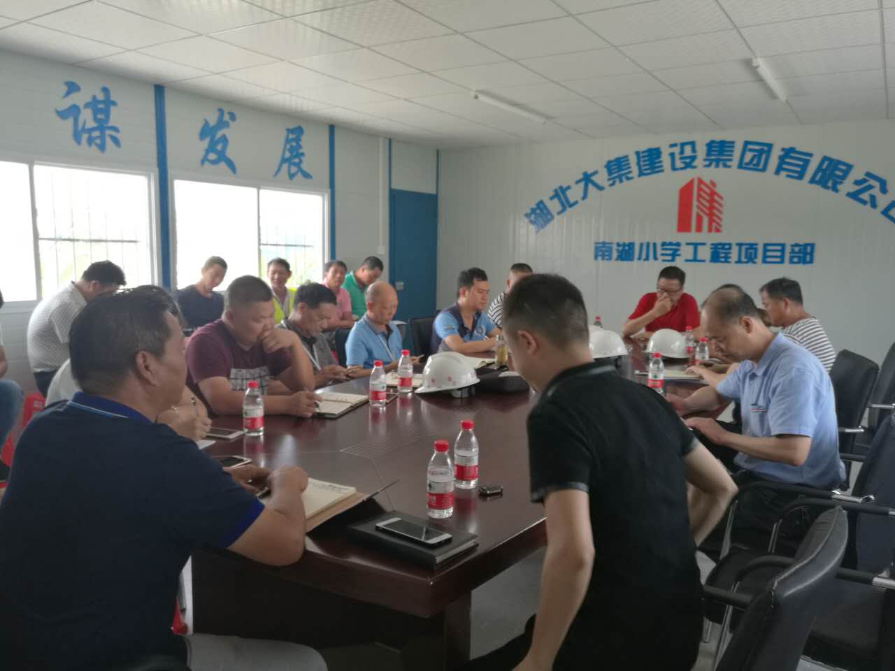 會(huì)議開(kāi)始, 由南湖小學(xué)項(xiàng)目施工員介紹了該項(xiàng)目的主要情況及進(jìn)度,并表達(dá)了南湖小學(xué)項(xiàng)目創(chuàng)杯爭(zhēng)優(yōu)的決心,確保楚天杯,爭(zhēng)創(chuàng)魯班獎(jiǎng),并對(duì)施工工藝細(xì)節(jié)和各個(gè)操作班組制定了具體規(guī)范和標(biāo)準(zhǔn)。