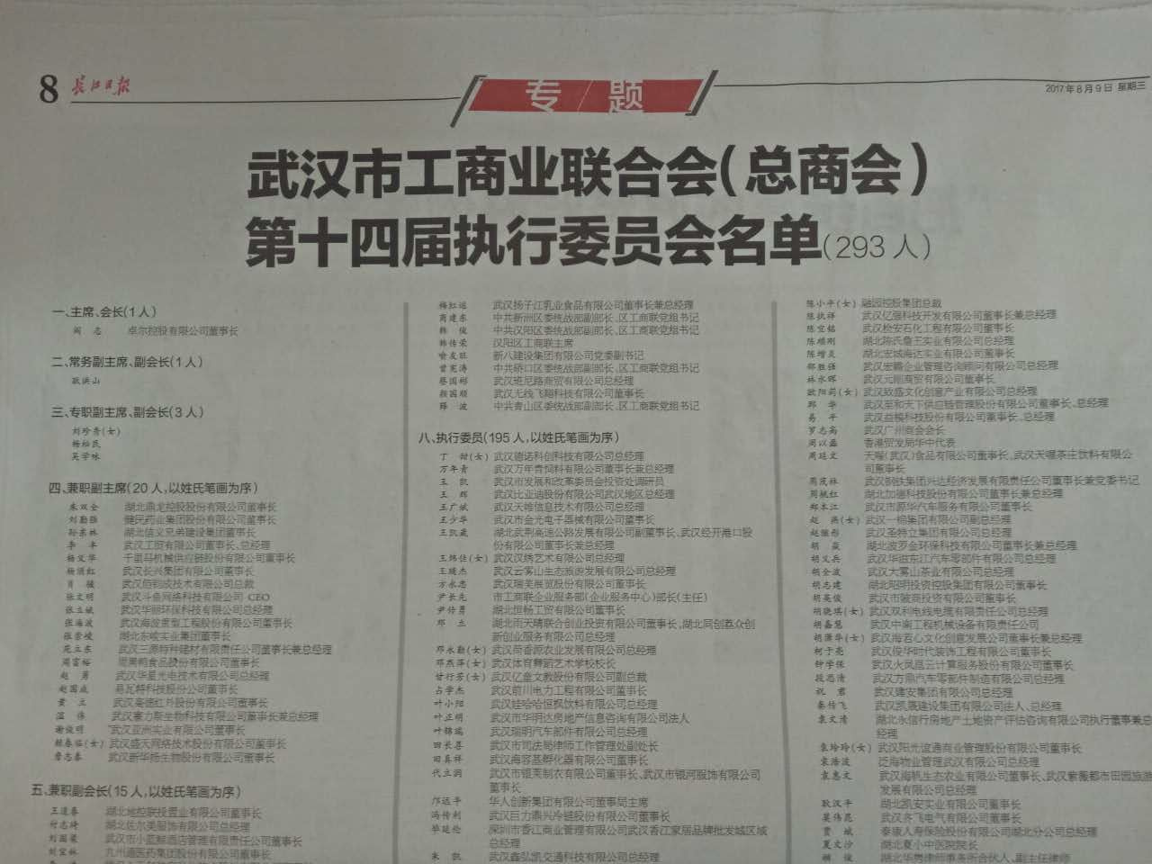 8月8日,武漢市工商業(yè)聯(lián)合會第十四次代表大會隆重召開,湖北大集建設集團董事長徐濤當選為總商會第十四界執(zhí)行委員!