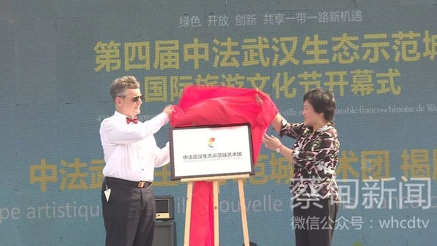 蔡甸區(qū)長、中法武漢生態(tài)示范城管委會第一副主任彭巧娣與法國駐漢總領(lǐng)事貴永華為“中法武漢生態(tài)示范城藝術(shù)團(tuán)”揭牌。
