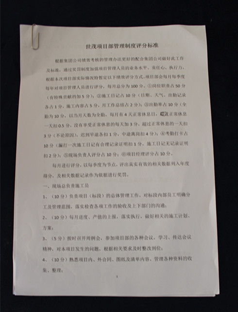 目前,集團(tuán)實(shí)施的項(xiàng)目績(jī)效考核制度是今年2月份修訂完善后發(fā)布的,該制度新增了垂直管理環(huán)節(jié),將項(xiàng)目部相關(guān)崗位納入集團(tuán)統(tǒng)一管理,同時(shí)通過(guò)《員工目標(biāo)管理卡》將項(xiàng)目月度目標(biāo)分解到每位項(xiàng)目人員頭上,使項(xiàng)目人員更加深刻的明確自身崗位職責(zé),從而真正實(shí)現(xiàn)目標(biāo)責(zé)任到人。