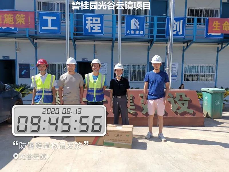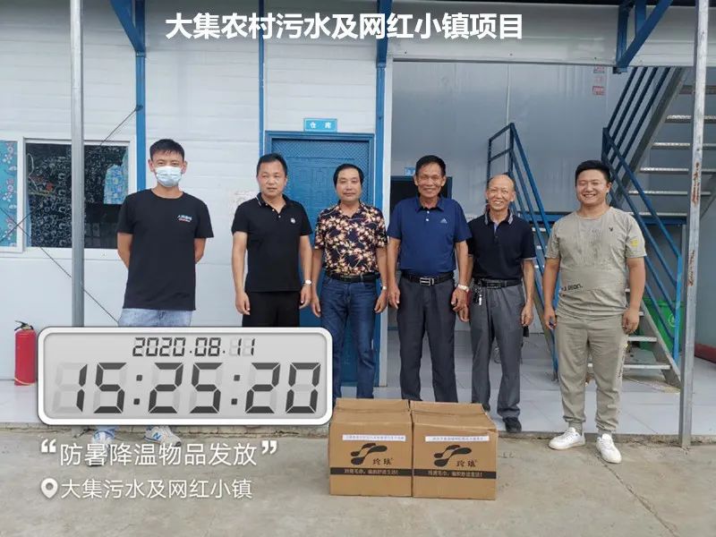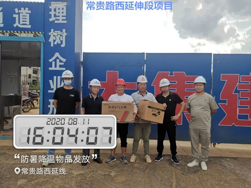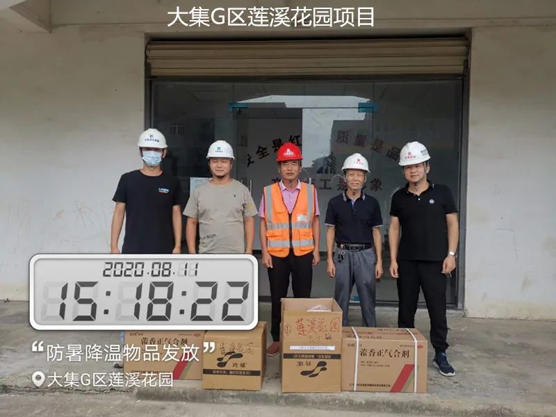 大集G區(qū)蓮溪花園項目、大集街農(nóng)村污水治理項目、大集景綠網(wǎng)紅特色小鎮(zhèn)項目、世茂龍灣47#號地塊別墅樓工程、黃星大道加油站項目、年產(chǎn)80萬套總成項目、常貴路西延伸段項目、泰禾君悅花園項目、碧桂園光谷云鏡項目……每到一處,集團工程部都會將購買好的毛巾、風(fēng)油精、人丹、十滴水、藿香正氣水、蚊不叮等防暑降溫物資送到項目人員手中,并要求各項目部一定要把施工人員的身體健康放在首位,要在全力以赴抓質(zhì)量、搶進度、創(chuàng)佳績的同時,嚴(yán)格按照國家有關(guān)規(guī)定,把防暑降溫工作落實好、做到位,要根據(jù)天氣氣溫的變化,合理安排工作時間,作好安全預(yù)防措施、備足防暑降溫物質(zhì),讓員工們安全度過高溫天氣。