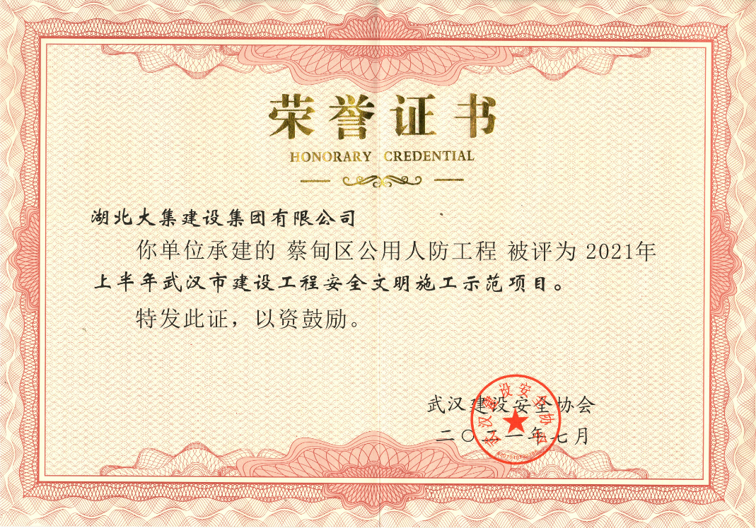 蔡甸區(qū)公用人防工程榮譽(yù)