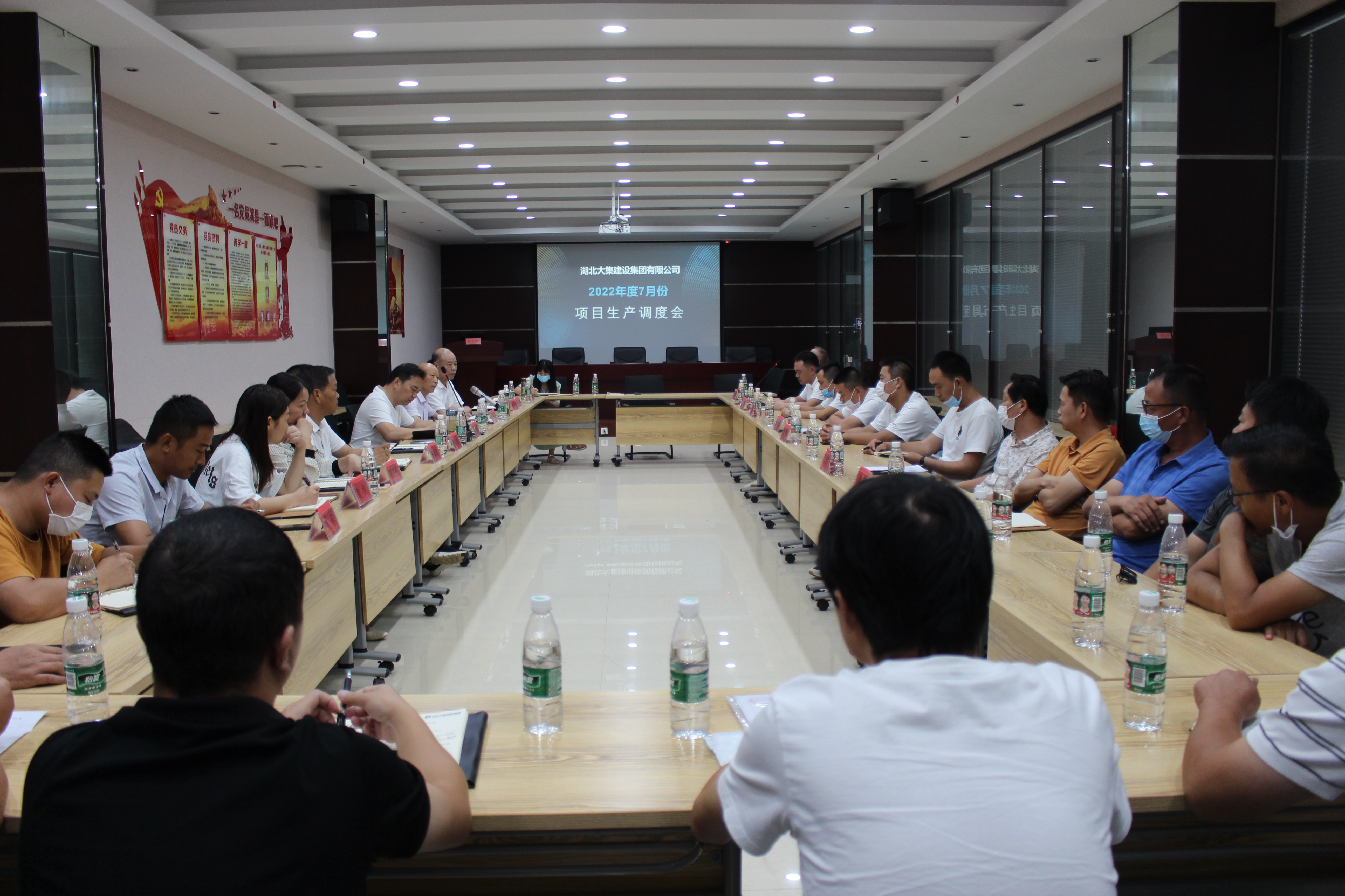 7月7日上午,集團(tuán)公司組織召開了7月份項(xiàng)目生產(chǎn)調(diào)度會,就各在建項(xiàng)目及新開工項(xiàng)目推進(jìn)過程中存在的難點(diǎn)、堵點(diǎn)進(jìn)行了分析,梳理問題,明確解決方案,合力推進(jìn)項(xiàng)目建設(shè)。集團(tuán)公司董事長徐濤、總經(jīng)理徐遠(yuǎn)征、副總經(jīng)理徐家富、各部門負(fù)責(zé)人及各項(xiàng)目經(jīng)理、施工員參加了此次會議。