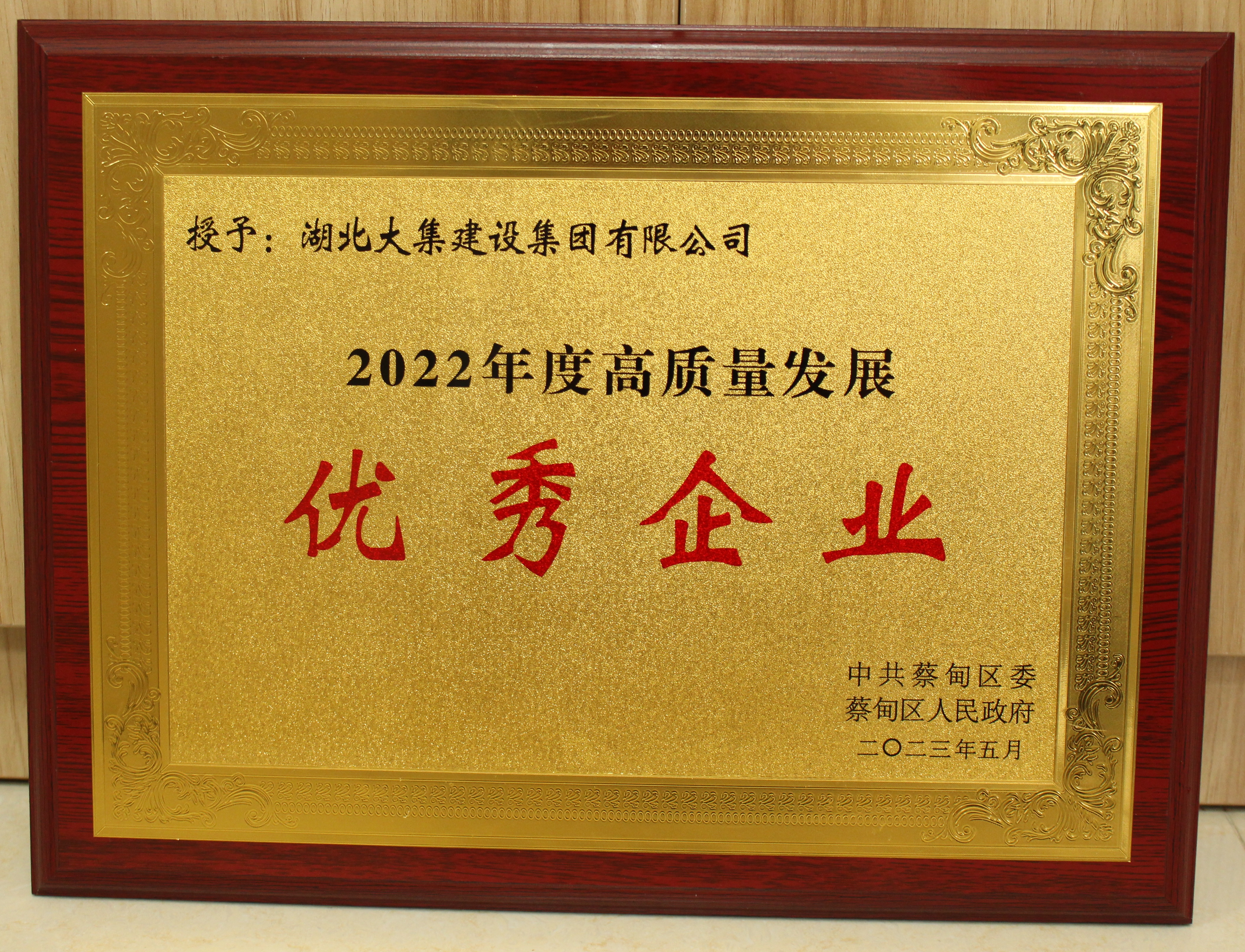 5月31日上午,中共蔡甸區(qū)委、蔡甸區(qū)人民政府組織召開了“蔡甸區(qū)學(xué)習(xí)大灣區(qū)經(jīng)驗推動高質(zhì)量發(fā)展大會”。大會表揚了一批突出貢獻企業(yè)和優(yōu)秀企業(yè),湖北大集建設(shè)集團有限公司榮獲“2022年度高質(zhì)量發(fā)展優(yōu)秀企業(yè)”榮譽稱號。