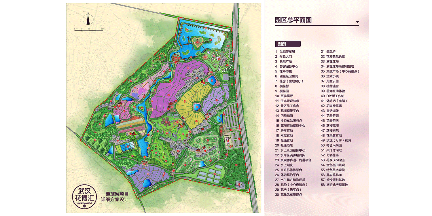 武漢花博匯總投資50億元,總規(guī)劃面積4800畝,邀請(qǐng)國(guó)際頂尖設(shè)計(jì)團(tuán)隊(duì)擔(dān)綱設(shè)計(jì),以“村-田-林-溪-塘”場(chǎng)地肌理為基礎(chǔ),以創(chuàng)意型花海景觀打造為主題,竭力打造集花卉旅游觀光、文化傳承交流、創(chuàng)意農(nóng)業(yè)體驗(yàn)、田園養(yǎng)生度假、親水休閑游樂(lè)、美麗鄉(xiāng)村體驗(yàn)、花卉集中展銷(xiāo)等諸多功能于一體的全國(guó)性精品休閑度假綜合體,滿(mǎn)足城市人群回歸自然、城郊休憩、體驗(yàn)野趣、養(yǎng)生度假等極致追求。