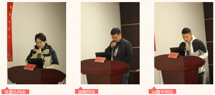 大會(huì)第一項(xiàng)議程,討論并確定發(fā)展對(duì)象和入黨積極分子。大會(huì)嚴(yán)格按照黨員發(fā)展流程,入黨申請(qǐng)人李晨樂(lè)同志、袁剛同志匯報(bào)了入黨動(dòng)機(jī)、對(duì)黨的認(rèn)識(shí),入黨積極分子山建華同志宣讀了《入黨志愿書(shū)》,匯報(bào)了其在工作學(xué)習(xí)方面的表現(xiàn)。隨后,經(jīng)過(guò)支部黨員們研究討論、投票表決,最終確定山建華同志為發(fā)展對(duì)象,李晨樂(lè)、袁剛兩名同志為入黨積極分子。