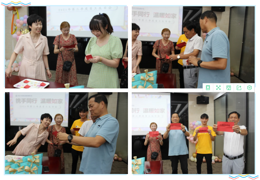 生日會簡短而熱烈,大家品嘗著香甜的蛋糕,不僅讓員工們在緊張繁忙的工作之余,享受活躍又溫暖的輕松時(shí)刻;同時(shí),也讓壽星們感受到了公司領(lǐng)導(dǎo)的關(guān)懷,感受到了集體的溫暖,進(jìn)一步增強(qiáng)了員工的集體榮譽(yù)感、歸屬感和責(zé)任心,增強(qiáng)了公司凝聚力。