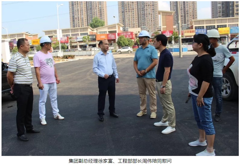 炎炎夏日送清涼,絲絲關(guān)懷暖人心。7月24日,蔡甸區(qū)大集街黨工委書記曹克斌、副書記吳永峰,工會副主席劉浩等領(lǐng)導(dǎo)蒞臨南湖(新光)小學(xué)項目開展送清涼慰問活動,為項目上奮戰(zhàn)在高溫一線的工作人員送來綠茶、礦泉水、十滴水、人丹等防暑降溫物資,集團(tuán)副總經(jīng)理徐家富、工程部部長周偉陪同慰問并向各位領(lǐng)導(dǎo)詳細(xì)講解了項目建設(shè)情況。