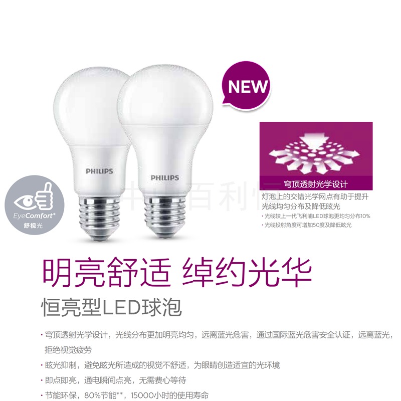 飛利浦  E27舒適光LED球泡(6-12W白光)